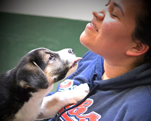 This sweet little thing was rescued from a crack-house. See her pink cast, the one that matches her shirt? Daisy got that cast because she was thrown against a wall. Yes, someone picked up this loving girl and threw her tiny body against a wall, breaking her leg. A human did this to her, and yet, she still loves people and is as affectionate as can be! Thanks to PAWS she is guaranteed the happy ending she so rightly deserves; there are at least 30 people interested in adopting her already.