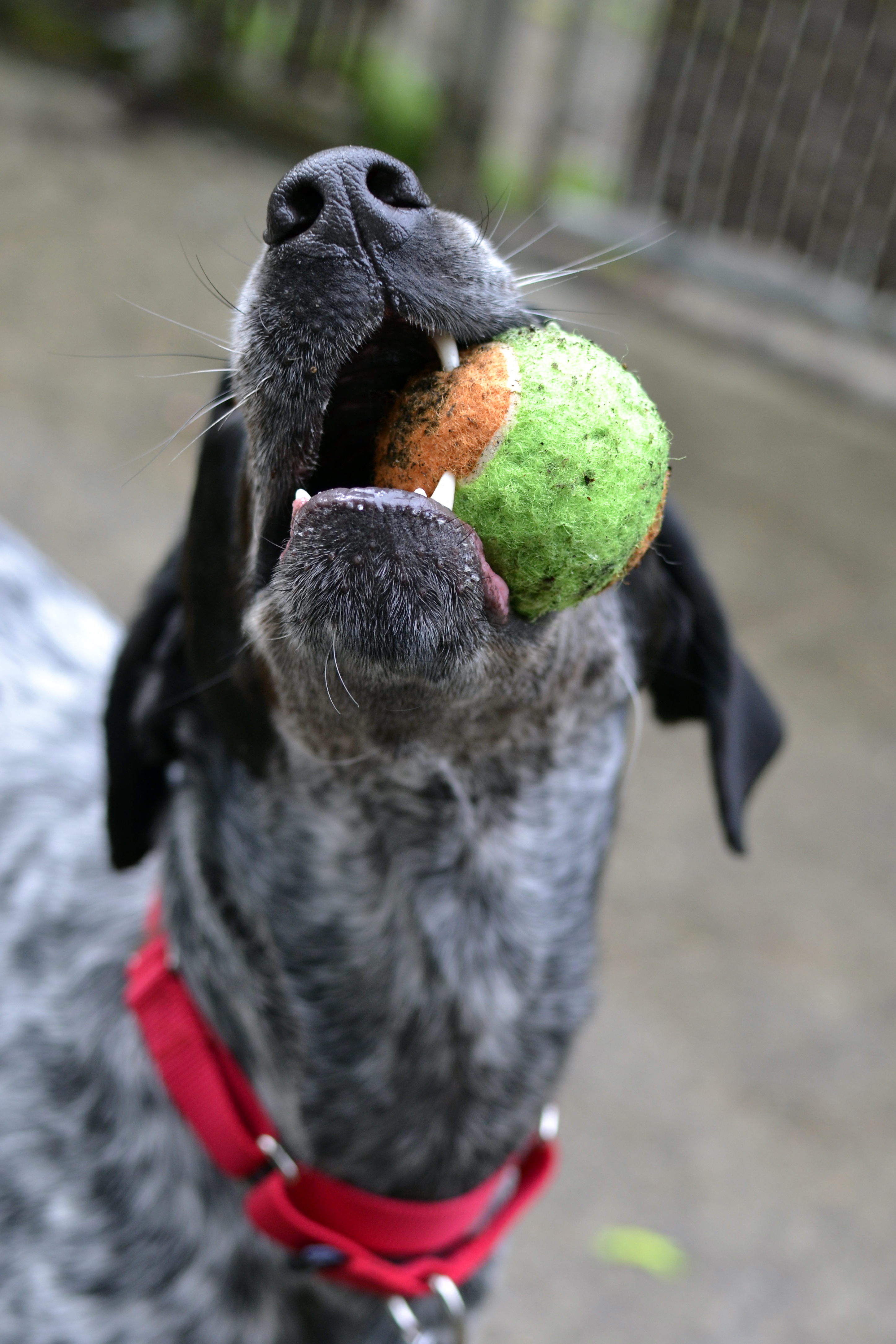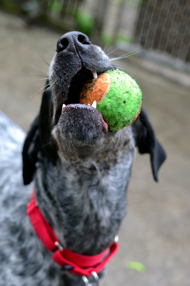 The second dog reminded me a lot of my girl Trixie; she was a black and white pointer. Her name was Tulip, and she seemed very worried and “talked” a lot. She was also very ball-motivated, however, which made for some great photographs! I had a hard time choosing only 3 for Petfinder, but I am pretty sure her family will be coming for her soon, if they haven’t already. This dog was obviously well cared-for, with a silky coat and trimmed nails.